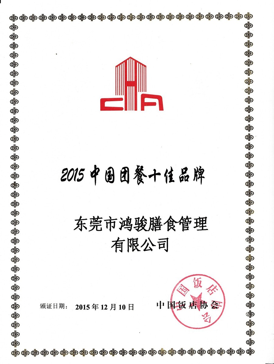 鴻駿再度榮獲“中國(guó)團(tuán)餐十佳品牌”稱(chēng)號(hào)