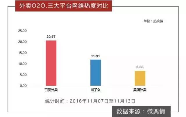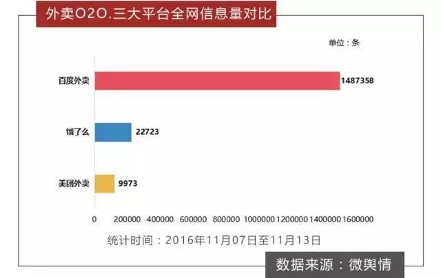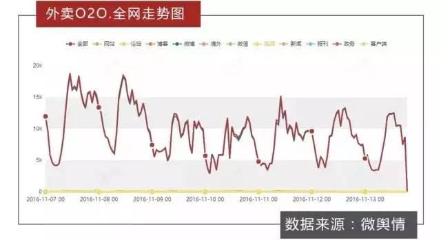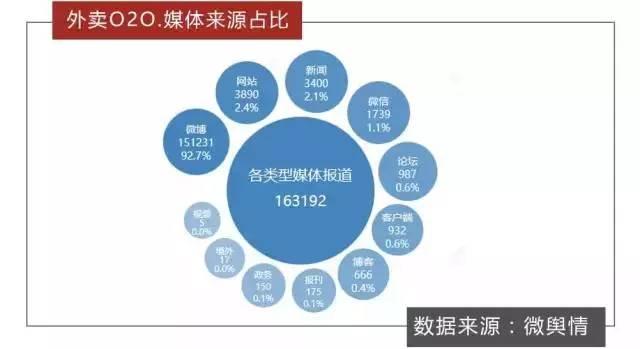 而據(jù)統(tǒng)計,在11月7日至13日期間,關(guān)于外賣O2O的全網(wǎng)信息總量高達163余萬條,微博成為該話題的主要輿論平臺,信息量占比達92.7%。