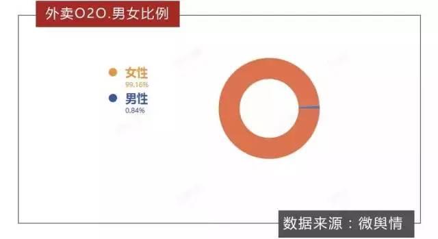 從用戶群的性別比例來看,女性網(wǎng)友更關(guān)注外賣O2O,并且占比高達99.16%。