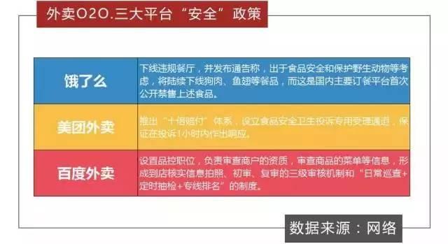 與此同時,三大平臺也針對餐品安全出臺了一些食品安全賠付政策,試圖贏得消費者的加分。