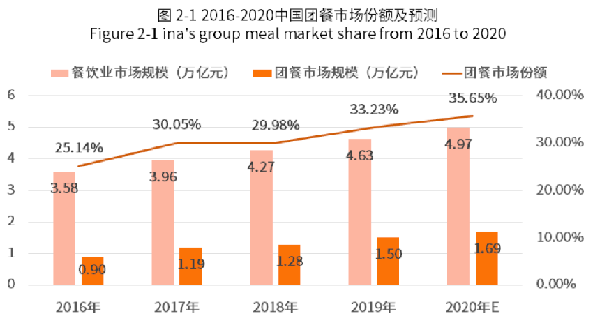據統(tǒng)計,2019年中國團餐市場規(guī)模高達1.5萬億元,占整個中國餐飲市場的33.23%。